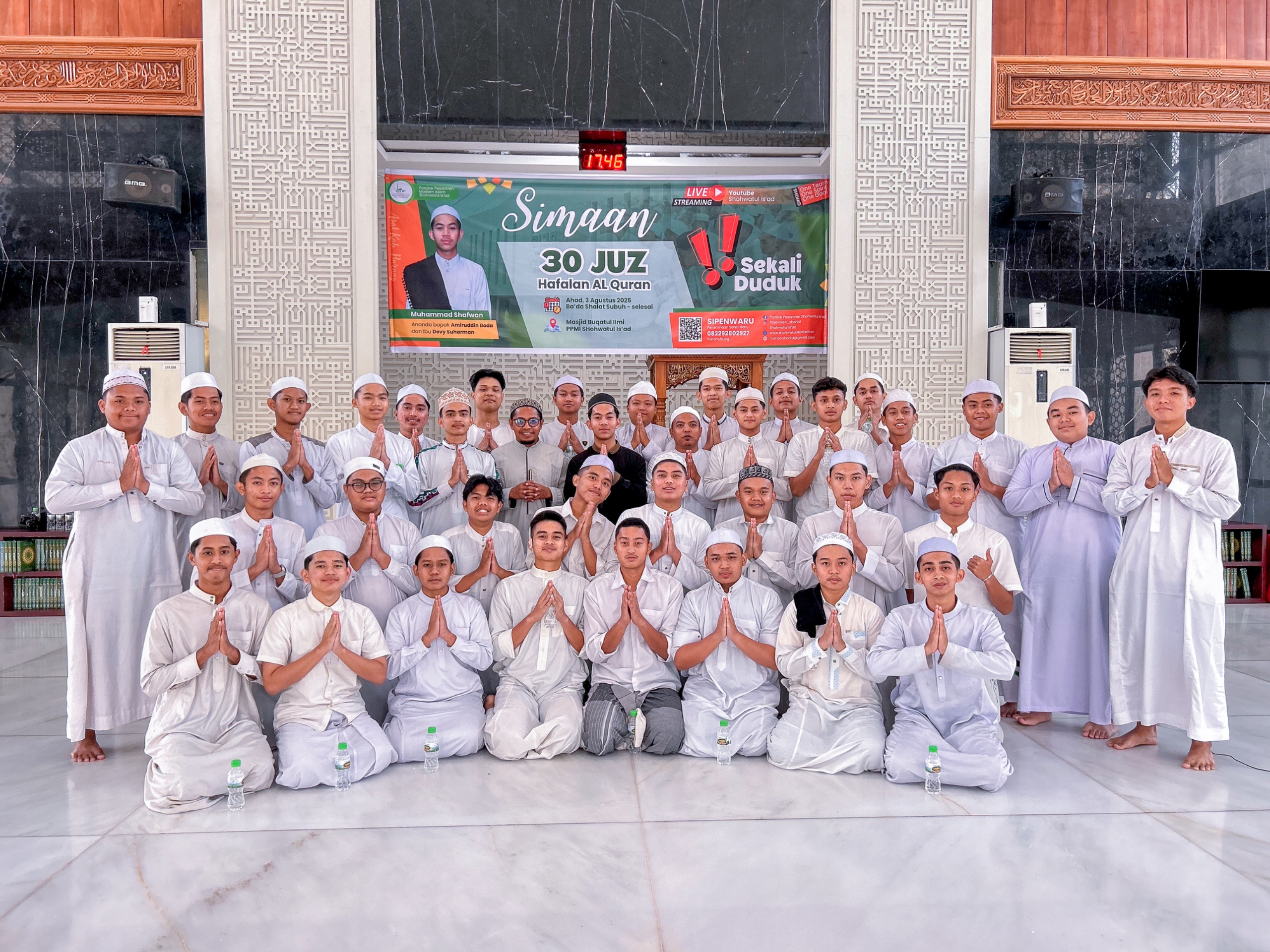 Pangkep 3 Agustus 2025- Masjid Buqatul Ilmi, PPMI Shohwatul Is’ad kembali menjadi saksi lantunan Kalam Ilahi yang menggema penuh khidmat pada Ahad, 3 Agustus 2025. Salah seorang santri terbaik, Muhammad Shafwan, putra dari Bapak Amiruddin Boda dan Ibu Devy Suharman, berhasil menyelesaikan simaan 30 juz hafalan Al-Qur’an dalam sekali duduk selama kurang lebih 13 jam secara mutqin.