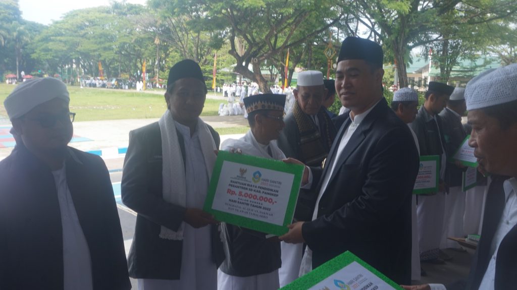 Pangkep – Peringatan hari santri tingkat kabupaten Pangkep menjadi berkah bagi belasan pondok pesantren. Sebanyak 14 Pondok pesantren menerima bantuan dana pendidikan yang diserahkan oleh Bupati Pangkep Muhammad Yusran Lalogau (MYL).