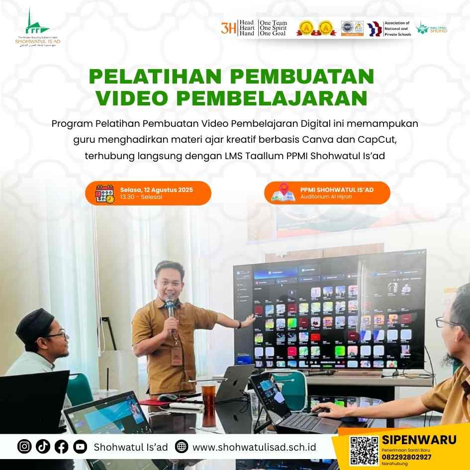 Pangkep 13 Agustus 2025- PPMI Shohwatul Is’ad terus berinovasi dalam meningkatkan kompetensi guru di era digital. Salah satu langkah nyata tersebut adalah penyelenggaraan Pelatihan Pembuatan Video Pembelajaran Digital bagi seluruh guru Shohwatul Is’ad yang digelar pada Selasa, 13 Agustus 2025 di Auditorium Al-Hijrah PPMI Shohwatul Is’ad.