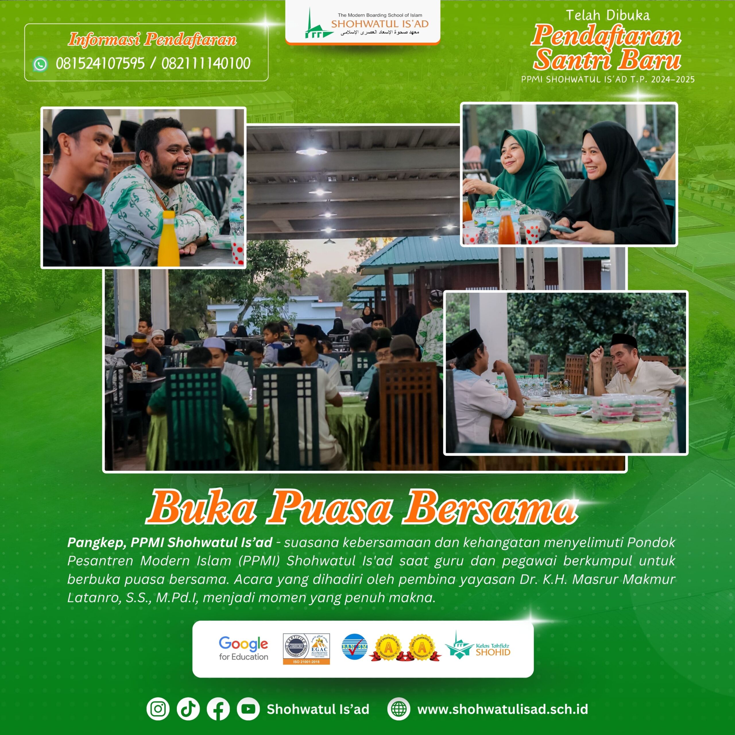 Acara ini tidak hanya merupakan simbol kebersamaan, tetapi juga merupakan bentuk komitmen bersama untuk menjaga solidaritas dan kekompakan di lingkungan kerja. Diharapkan, semangat yang terpancar dari buka puasa bersama ini akan terus membawa berkah dan kesuksesan bagi PPMI Shohwatul Is’ad dalam mencapai visi dan misinya yang mulia.