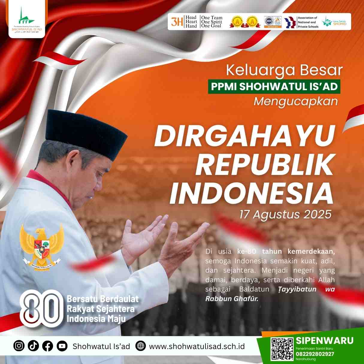 Pangkep, 17 Agustus 2025- Semarak peringatan Hari Ulang Tahun Kemerdekaan Republik Indonesia ke-80 tahun 2025 di PPMI Shohwatul Is’ad menjadi momentum penting untuk merefleksikan makna kemerdekaan dalam lintasan waktu sejarah bangsa. Peringatan ini tidak hanya menghadirkan suasana meriah, melainkan juga menghidupkan kembali kesadaran bahwa kemerdekaan adalah anugerah besar yang diperoleh melalui perjuangan panjang dan penuh pengorbanan.