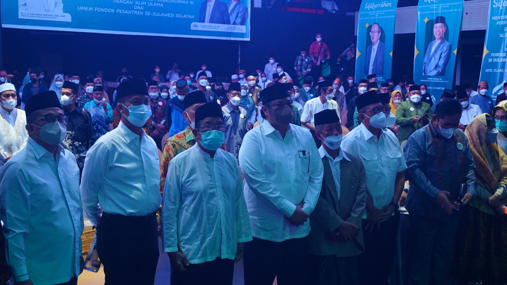 12 Maret 2022, Kegiatan Silaturahim Alim Ulama dan Pimpinan Pondok Pesantren se Sulawesi SelatanAcara bertema “Peran Ulama Menggerakkan Ekonomi Keumatan dan UMKM di Sulawesi Selatan” tersebut bertempat di Hotel Claro, Kota Makassar, Sulawesi Selatan, Sabtu (12/3/2022).Acara tersebut dihadiri oleh Menteri Koordinator Bidang Perekonomian Airlangga Hartarto. Sejumlah tokoh terlihat mendampingi Airlangga dalam kesempatan tersebut. Seperti diantaranya Menteri Perindustrian Agus Gumiwang Kartasasmita, Ketua Komisi I DPR RI Meutya Hafid, Ketua Komisi XI DPR RI Dito Ganindito, perwakilan Gubernur Sulawesi Selatan, Wakapolda Sulsel Brigjen Pol Chuzaini Patoppoi.Sejumlah pejabat dan tokoh Sulsel yang ikut hadir diantaranya Wali Kota Pare Pare Taufan Pawe, Ketua MUI Sulsel AGH Prof Najamuddin, Ketua Forum Silaturahmi Ulama Sulsel Nasran Mone, tokoh Bugis Aksa Mahmud dan Erwin Aksa.Dalam kesempatan tersebut Airlangga juga memberikan bantuan terhadap 12 UMKM pesantren senilai total Rp120 juta termasuk diantaranya Pondok Pesantren Shohwatul Is’ad.Airlangga mendorong sertifikat halal gratis yang melibatkan Majelis Ulama Indonesia (MUI) dapat semakin mengembangkan ekonomi pesantren serta memberi pesan bahwa ekonomi keumatan dapat berkontribusi terhadap pertumbuhan Indonesia di tengah penyebaran Covid-19.